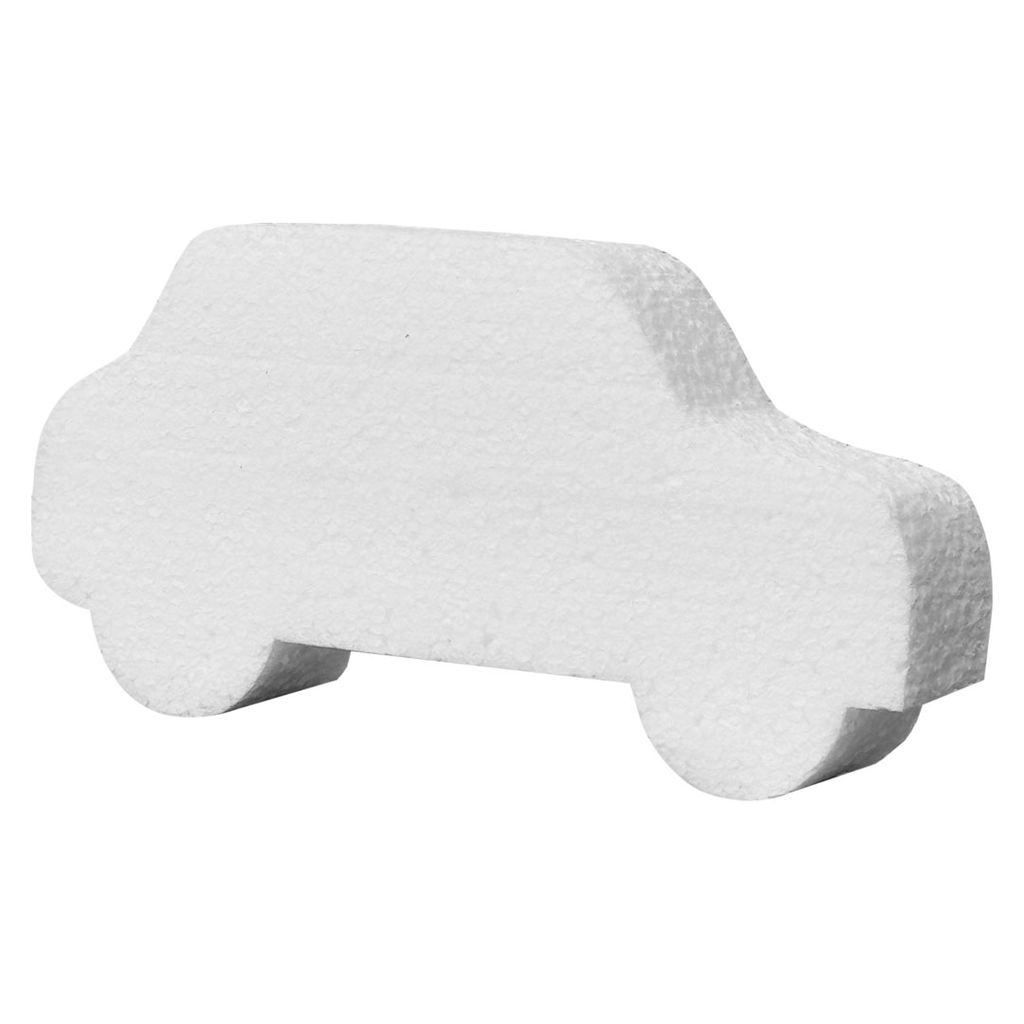 Vit frigolitbil i formstabil styrofoam. Perfekt som bas för målning, dekorationer och kreativa projekt. Lätt att jobba med och enkel att anpassa.
