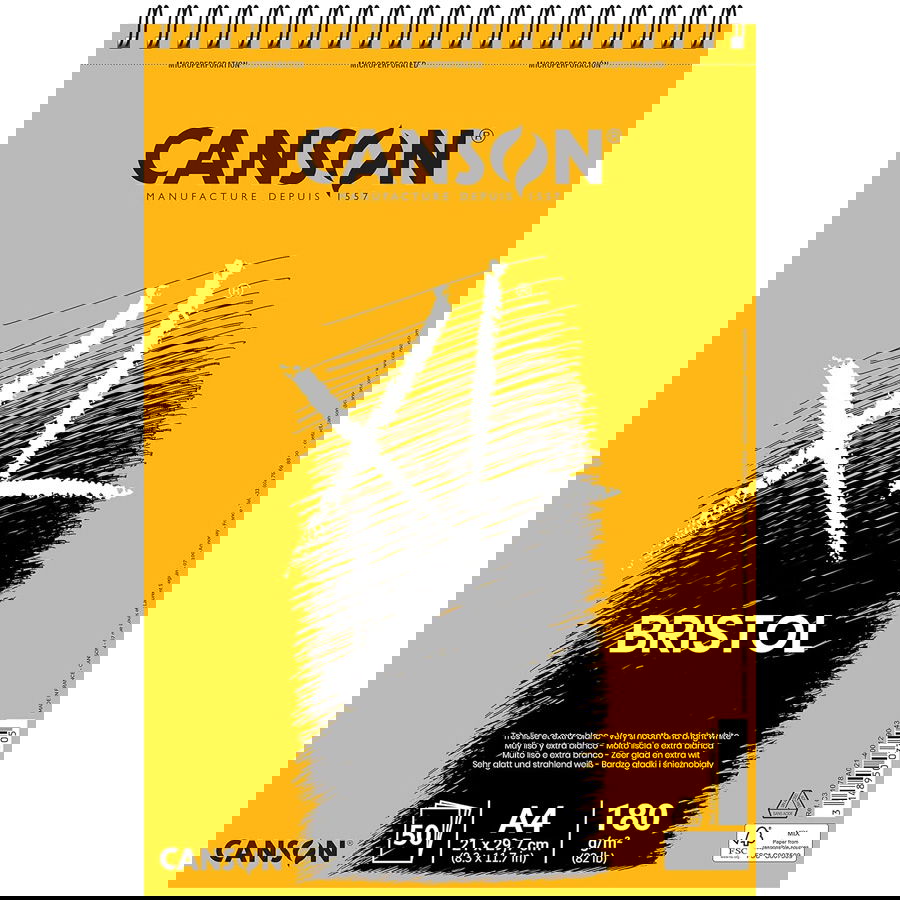 Canson XL Bristol är ett extra vitt och mycket slätt papper, framtaget för precisa teckningar och arbeten där skarpa linjer är i fokus. Pappret är tåligt och klarar upprepad suddning och bearbetning utan att ytan försämras.