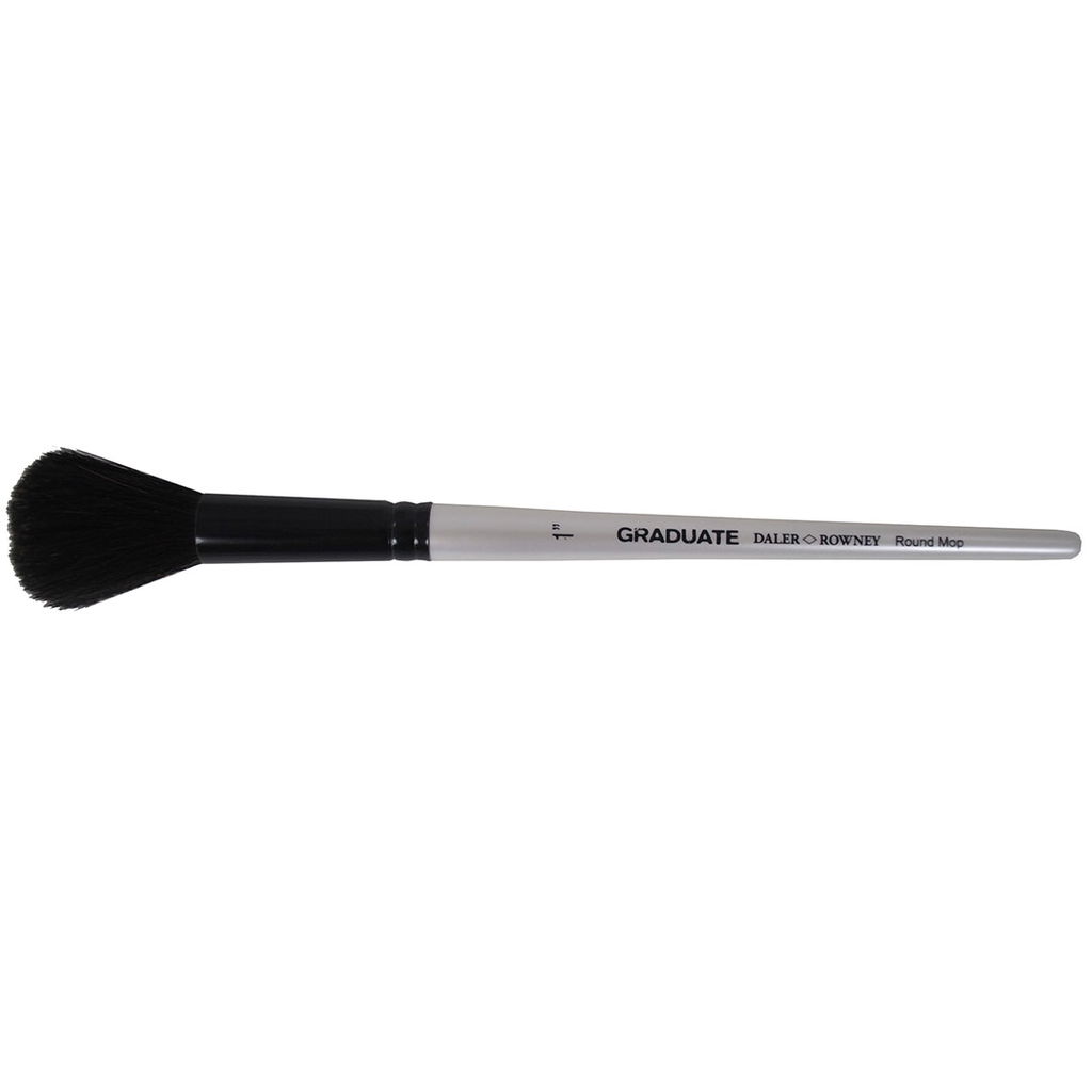 Daler-Rowney Graduate Mop Round 1" är en pensel med mjuk svart getborst och kort skaft. Den är särskilt framtagen för akvarell och gouache där den runda mopformen gör det enkelt att tona ut färg och skapa mjuka övergångar.