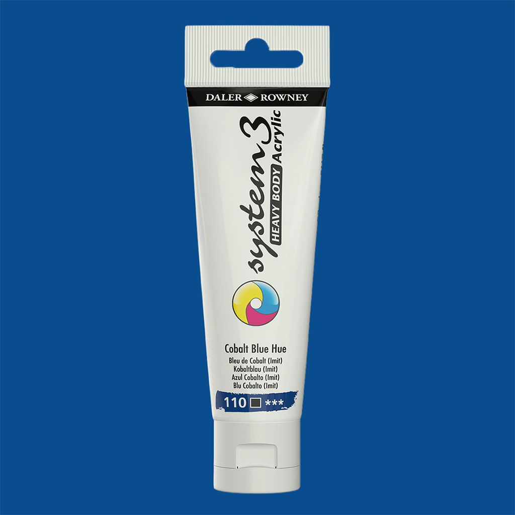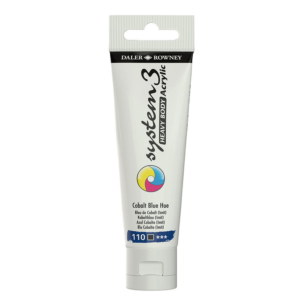 System3 Heavy Body Acrylic Paint 59 ml Cobalt Blue Hue från Daler-Rowney är en vattenbaserad akrylfärg med tjock, pastos konsistens som behåller struktur och tydliga penseldrag. Den passar bra för lagerarbete, impasto och målning där färgen ska synas tydligt.