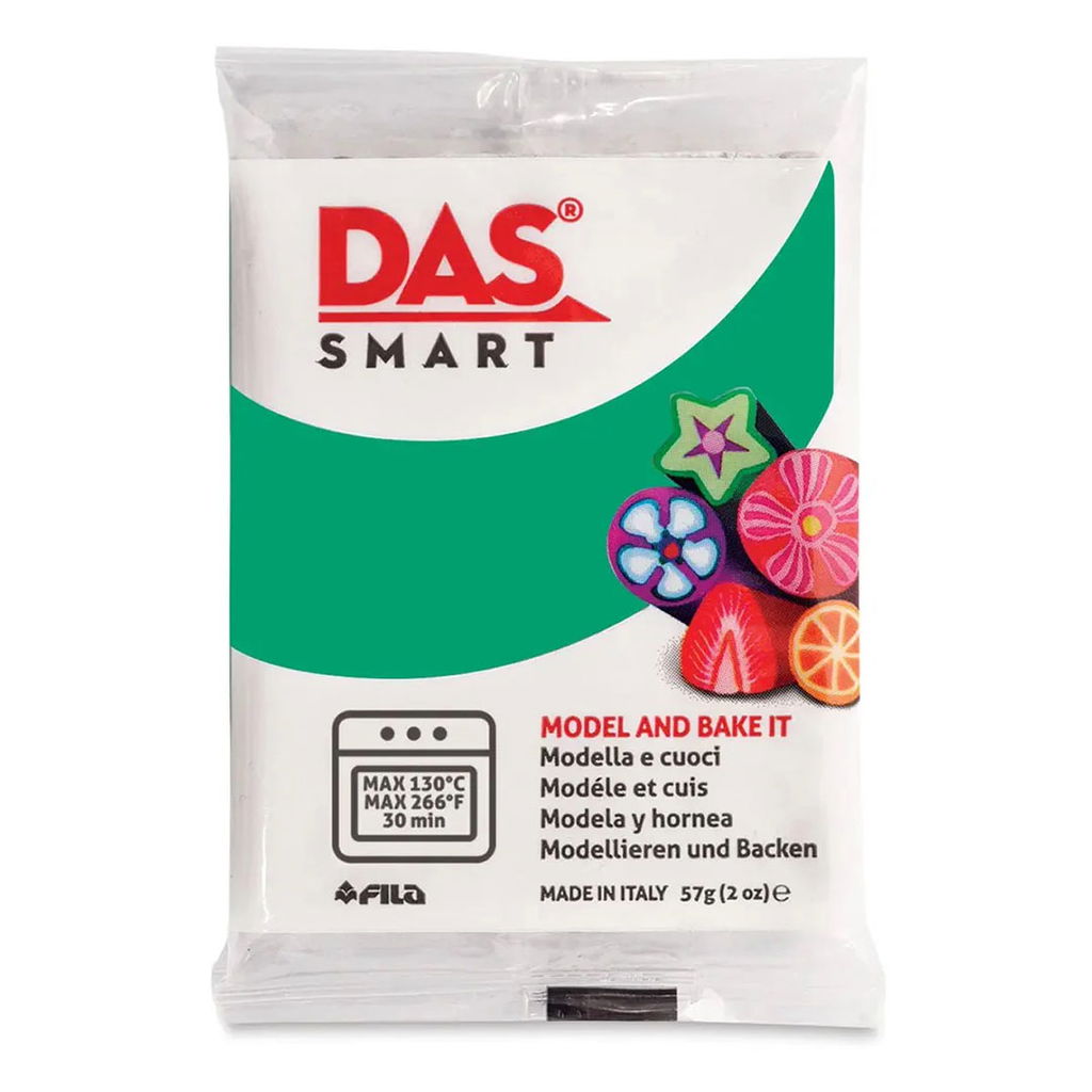 DAS Smart Emerald Green 57 g är en ugnshärdande polymerlera med en jämn och följsam konsistens. Den är enkel att forma, håller detaljer väl och lämnar ingen färg på händerna vid arbete.