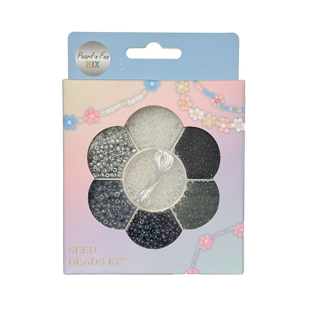 Detta set med glaspärlor innehåller en fin mix av färger i svart och vitt. Perfekt för smyckestillverkning, både för nybörjare och vana pysslare. Med den elastiska tråden som följer med kan du enkelt skapa armband, halsband eller små dekorationer.
