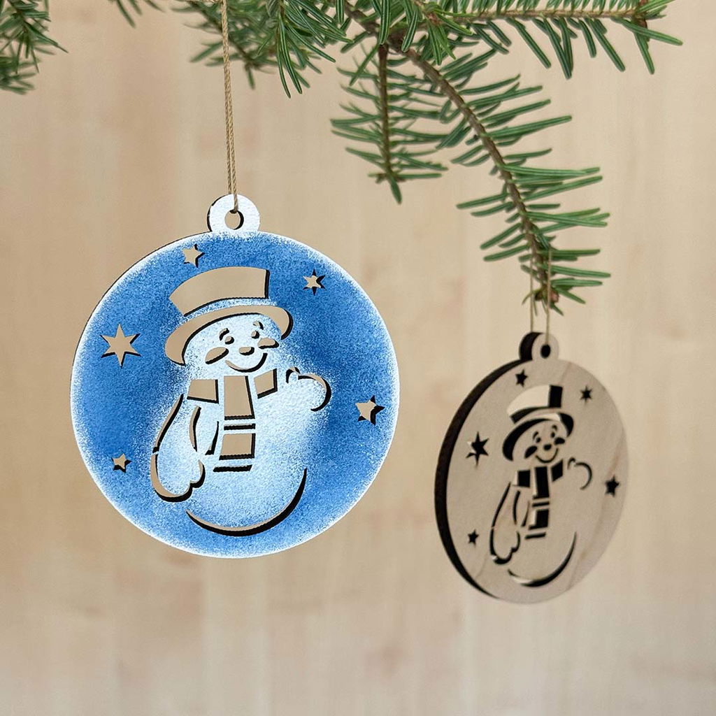 Ge din julgran en varm och lekfull känsla med detta julgranshänge i form av en snögubbe i kula på ca 8 cm. De utskurna detaljerna med snögubbens leende och små stjärnor runtom ger ett livfullt och festligt uttryck som passar perfekt bland julgransdekorationerna. Tillverkad av fin björkplywood 6 mm som ger kvalitetskänsla som passar både traditionella och moderna julgransdekorationer.
