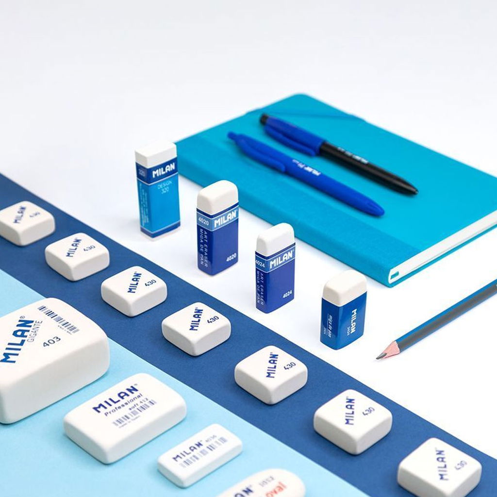 Milan Design 320 är ett vitt plastbaserat Nata®-radergummi med kartonghylsa och individuell förpackning. Det raderar effektivt de flesta blyertslinjer och fungerar på de flesta typer av papper utan att skada ytan. Gummit har en mjuk känsla som ger ren och kontrollerad radering.