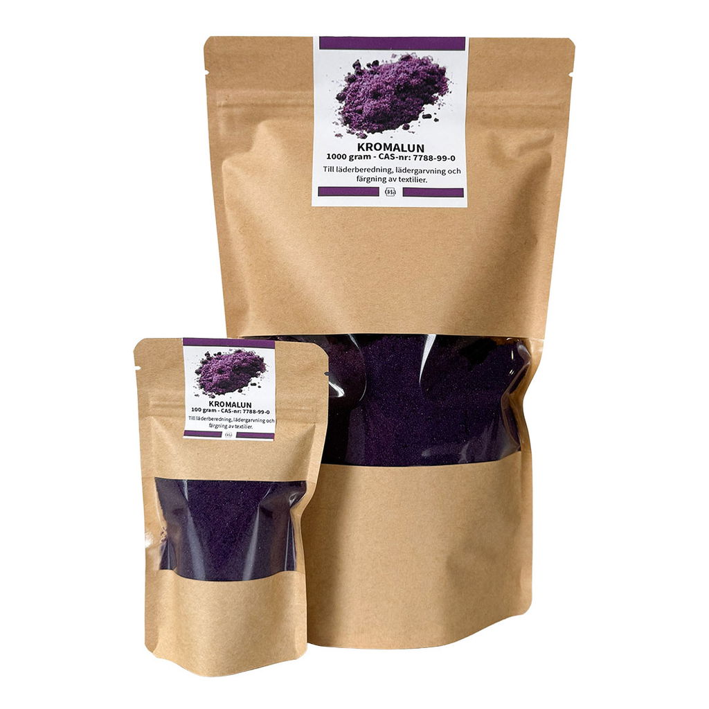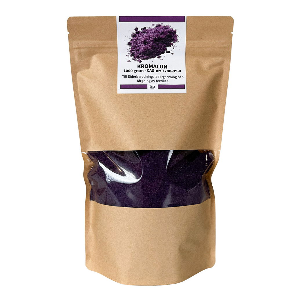 Kromalun är ett tekniskt alunsalt för lädergarvning, färgfixering och kemiska tillämpningar. Ger stabila och hållbara resultat vid hantverk. Mängd 1000 gram