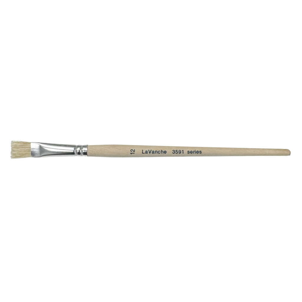 LaVanche Borstpensel Nr 12 i 3591-serien är en bred platt pensel med rak topp, framtagen för torrborstning på lite större ytor. Den styva svinborstet lägger bara färg på de högsta punkterna vilket ger den typiska patineringseffekten där strukturer och relief lyfts fram mot en mörkare bakgrund.