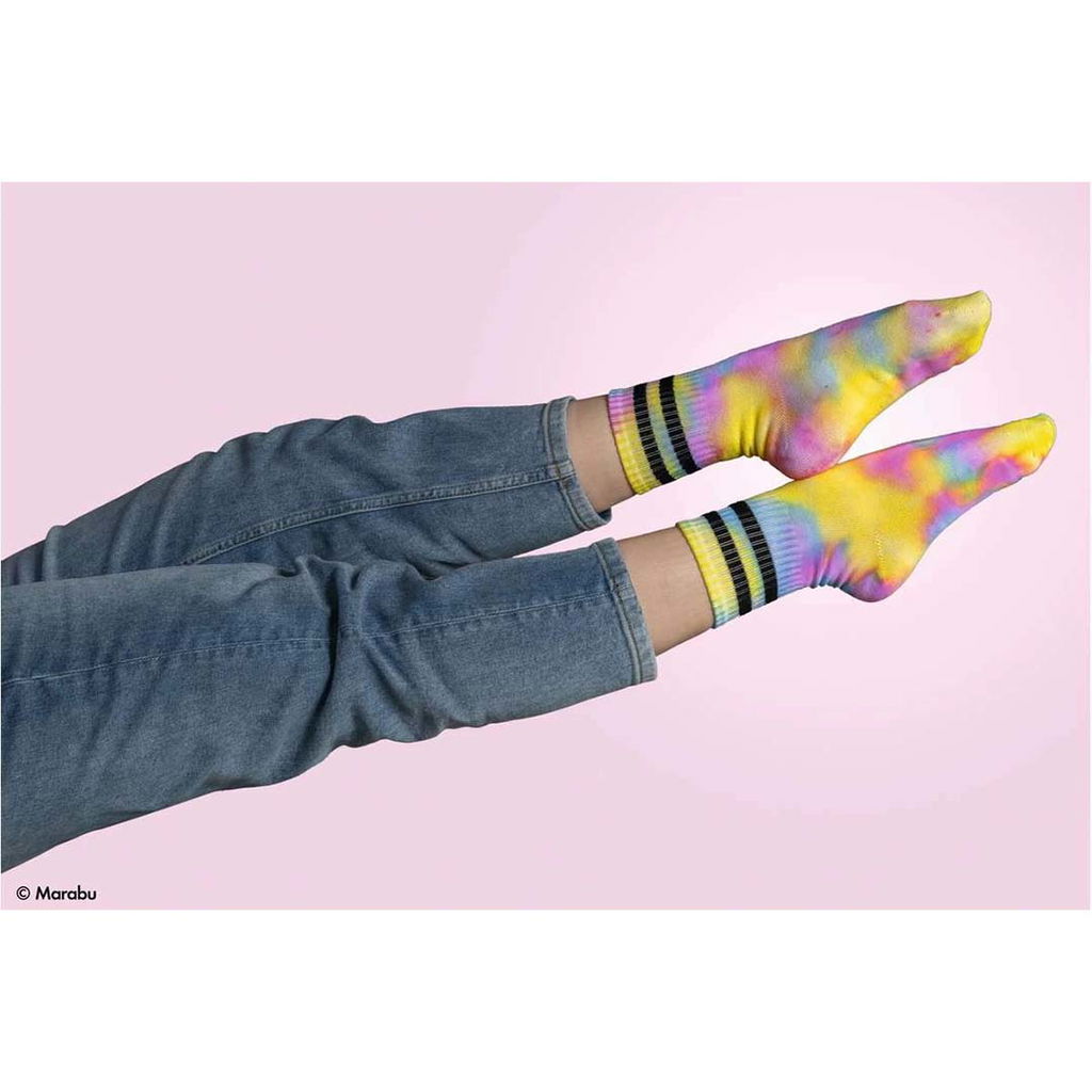 Marabu Tie Dye Ink Set Pastel innehåller tre nyanser i 80 ml-flaskor - pastel yellow, pastel pink och pastel blue. Med detta set kan du skapa unika batikmönster på tröjor, hoodies, shorts, strumpor, väskor och andra ljusa textilier med upp till 20% syntetfiber.