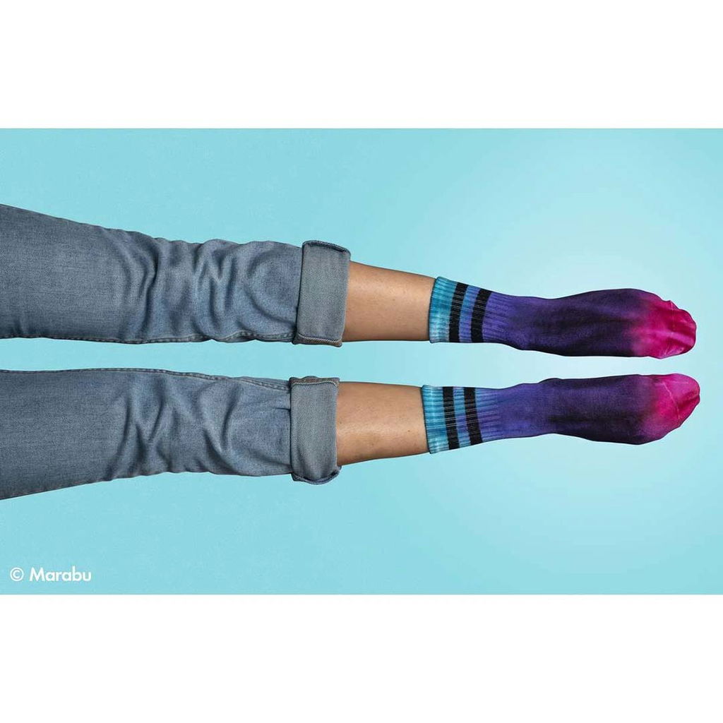 Marabu Tie Dye Ink Set Trend innehåller tre intensiva textilfärger i hallon, plommon och karibiskt blå. Setet är färdigt att använda direkt och gör det enkelt att skapa trendiga batikmönster på t-shirts, hoodies, shorts, strumpor och andra textilier. De starka nyanserna kan användas var för sig eller blandas för unika färgkombinationer.