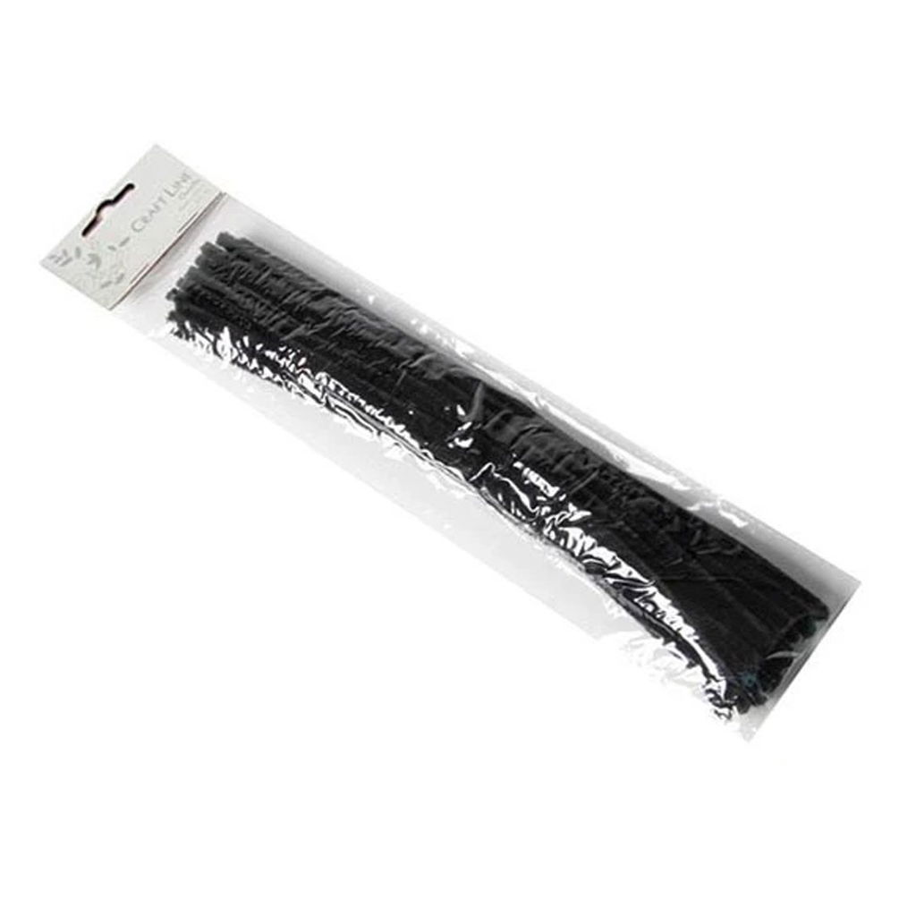 Svart piprensare i 50-pack. Skapa figurer, blommor eller dekorationer. Flexibla och enkla att använda för pyssel och hantverk. 30 cm långa och 6 mm tjocka.