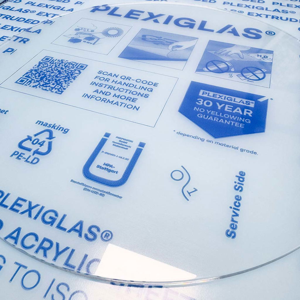 PLEXIGLAS® XT 3 mm rund skiva Ø500 mm är tillverkad av extruderat akrylglas av premiumkvalitet från Röhm GmbH. Den klara ytan och låga vikten gör den idealisk för konstnärliga projekt, gravyr, skyltar och inredningsdetaljer. Materialet är väderbeständigt och behåller sin glans både inomhus och utomhus.