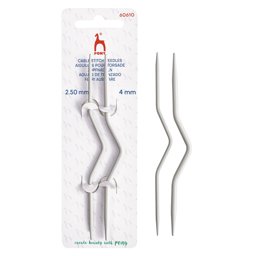 Pony flätstickor används för att skapa flätor i stickningen. Den karakteristiska böjda formen gör att maskorna inte glider av medan du arbetar, vilket ger bättre kontroll när du korsar dem. Perfekt för tröjor, mössor och andra projekt där du vill lägga till struktur och mönster.