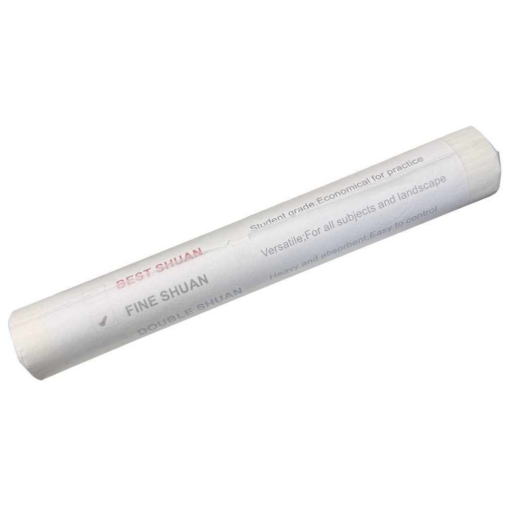 Fine Shuan är en studentkvalitet, prisvärd nog att öva regelbundet på och tillräckligt hållbar för vått-i-vått-teknik. Det långa formatet passar bra för vertikala kalligrafirullar och landskapsmålning. Lägg ett mjukt underlag under pappret, till exempel en filt eller tidningar, eftersom det är tunt och suger igenom.