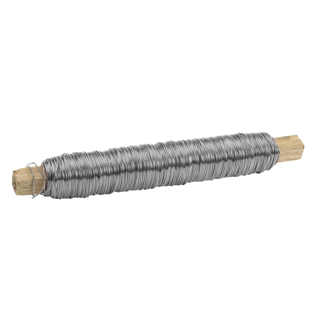 Ståltråd i silverfärg, perfekt för större binderier och arrangemang som behöver extra stadga. Tråden är stark men ändå smidig att forma, vilket gör den användbar både i kransbinderi, blomsterarrangemang och dekorationer.