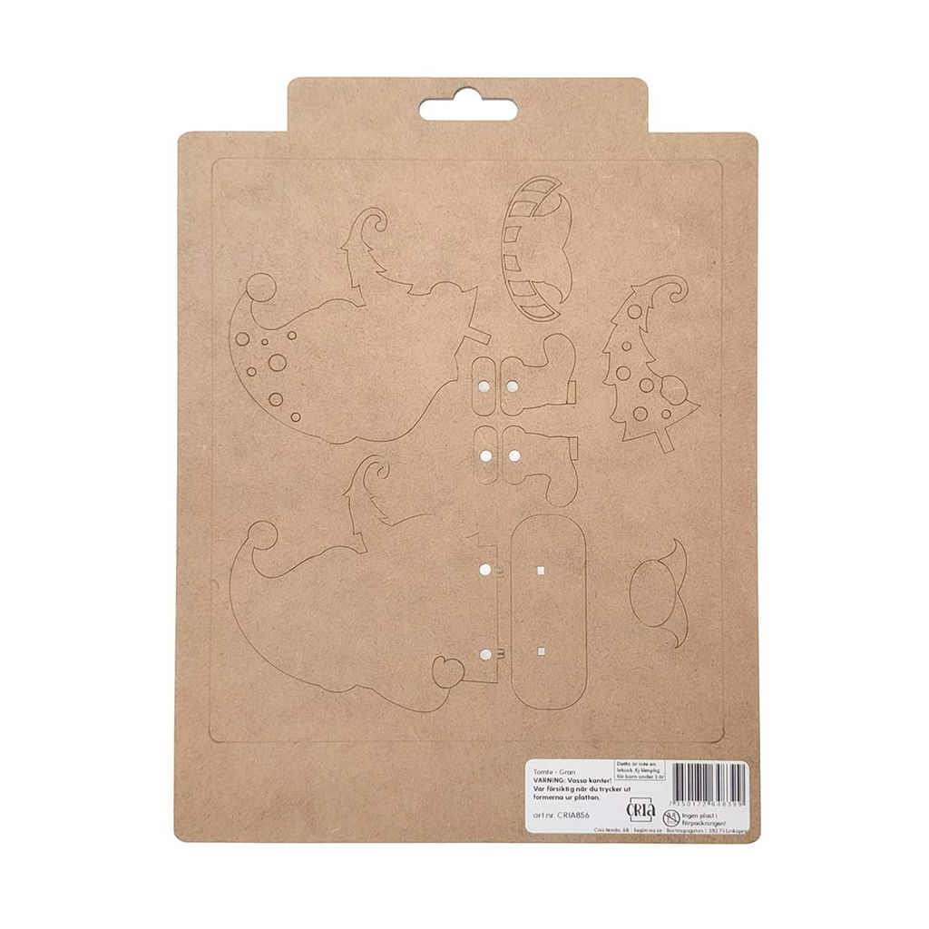 Våra "tomtar på kant" är små träfigurer som du själv sätter ihop och målar. Varje tomte levereras på en utskuren MDF-platta där du enkelt trycker loss delarna och monterar ihop dem med lim. Delarna byggs i lager så tomten får ett fint djup och en levande form.