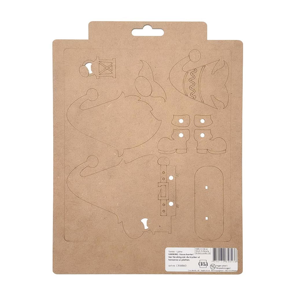 Tomte i trä med liten lykta i handen, ett juligt DIY-kit att måla och montera själv. Skapa en stämningsfull detalj som passar perfekt på hyllor och kanter.