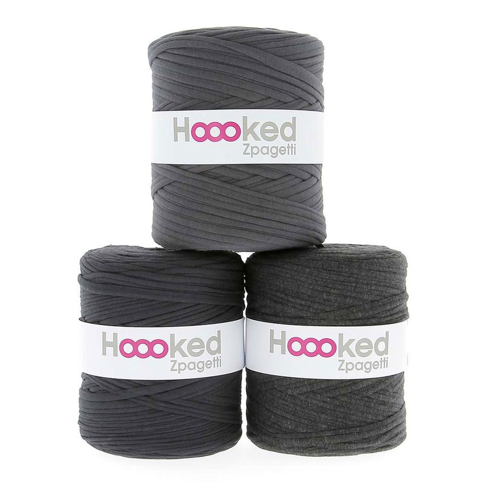 Hooked Zpagetti är originalet bland T-shirtgarner, ett extra tjockt trikågarn tillverkat av 100% återvunnen textil från europeisk mode- och textilindustri. Det är slitstarkt, elastiskt och enkelt att arbeta med. Perfekt för både virkning och stickning.